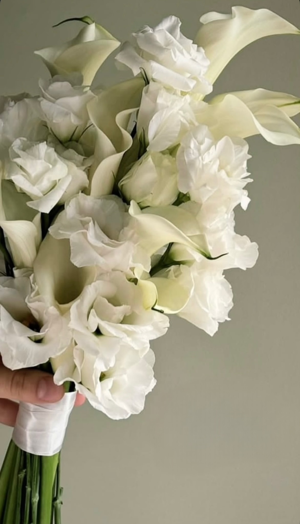 دسته گل عروس سفید با رز و ارکیده فلوبار