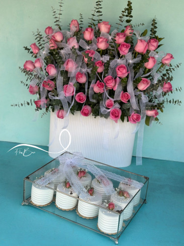 باکس گل و کاپ کیک خواستگاری صورتی فلوبار