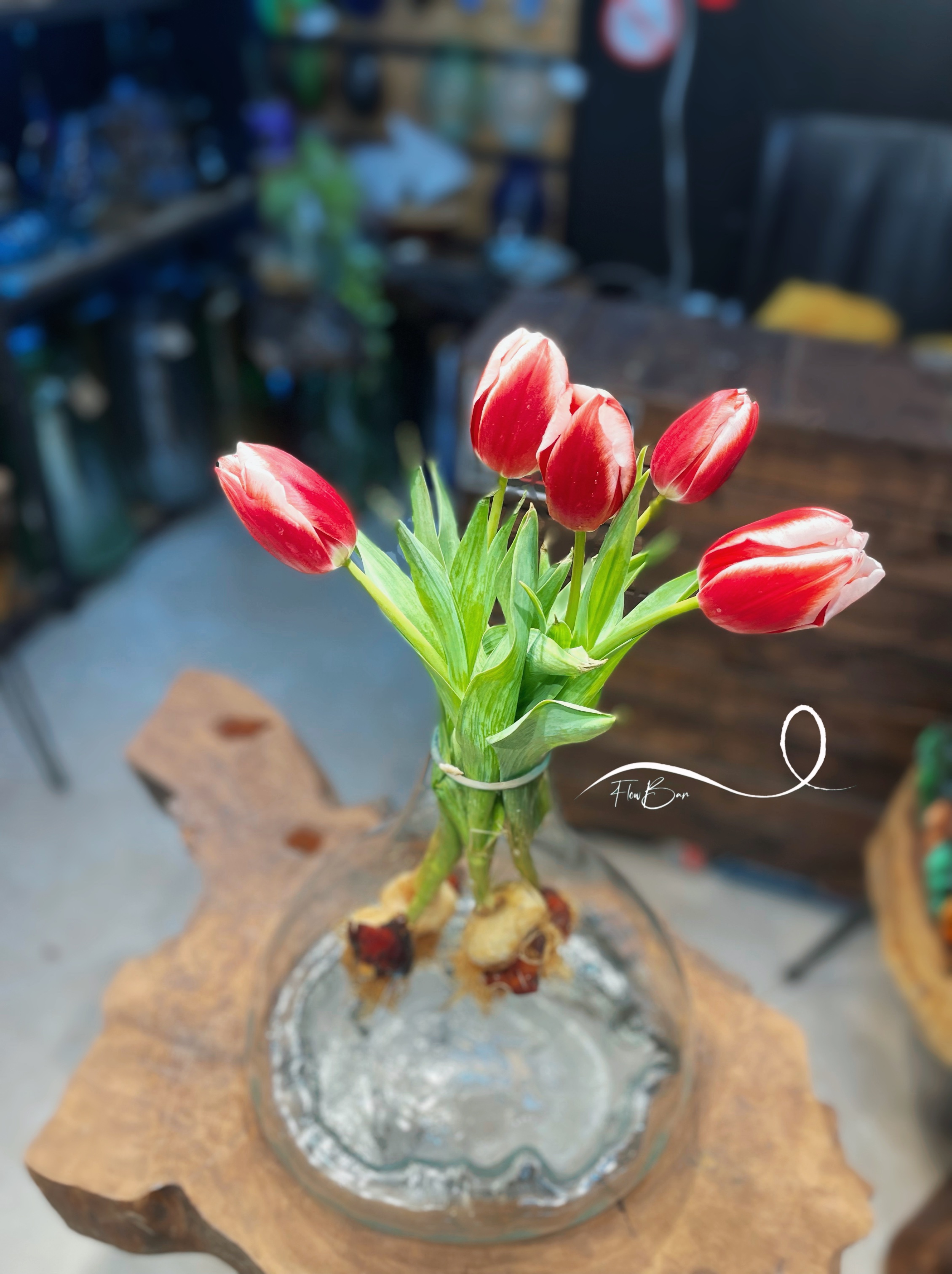 گل لاله مصنوعی زرد داخل فلاوربگ پلکسی فلوبار