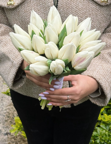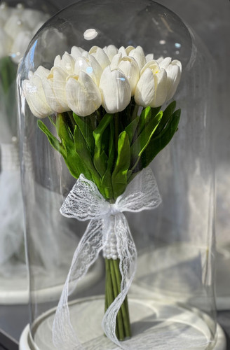 دسته گل عروس لاله سفید فلوبار