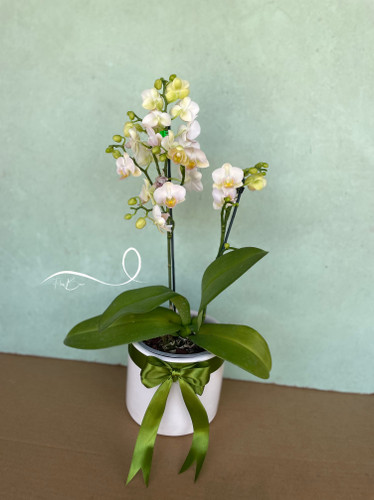 گلدان ارکیده هلویی دو شاخه فلوبار