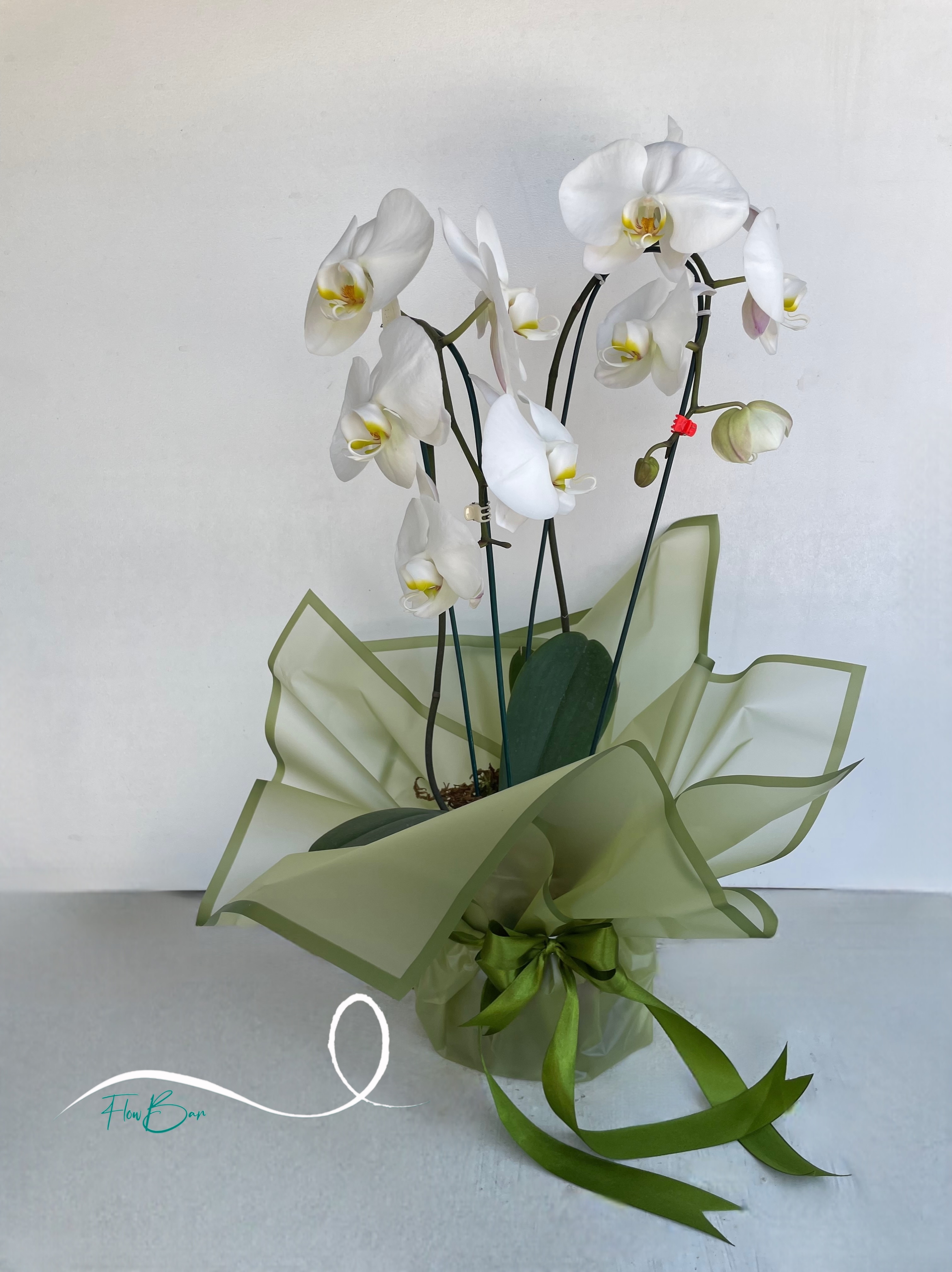 گلدان ارکیده هلویی دو شاخه فلوبار