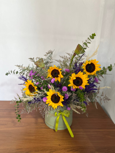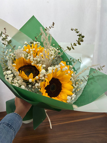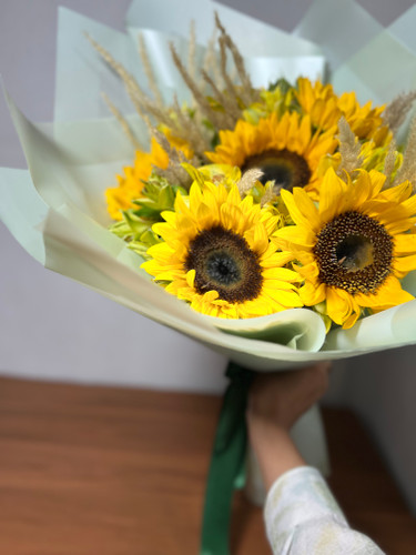 دسته گل آفتابگردون ترکیب با رنگ سبز فلوبار