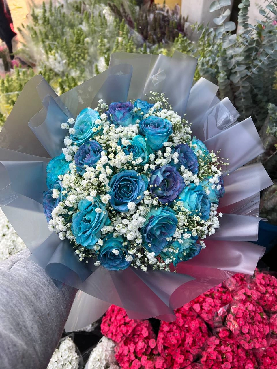 دسته گل رز آبی و ژیپسوفیلا فلوبار