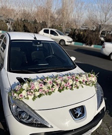 گل آرایی ماشین عروس ال ۹۰ سفید فلوبار