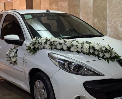 گل آرایی ماشین عروس ال ۹۰ سفید فلوبار