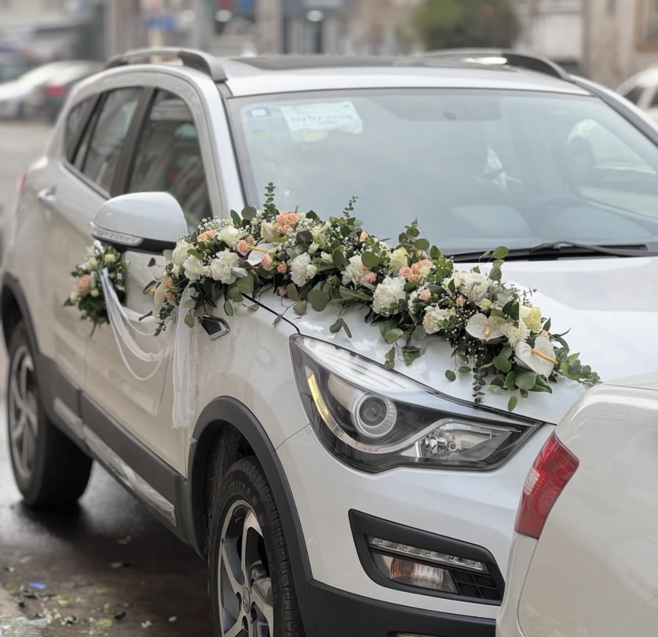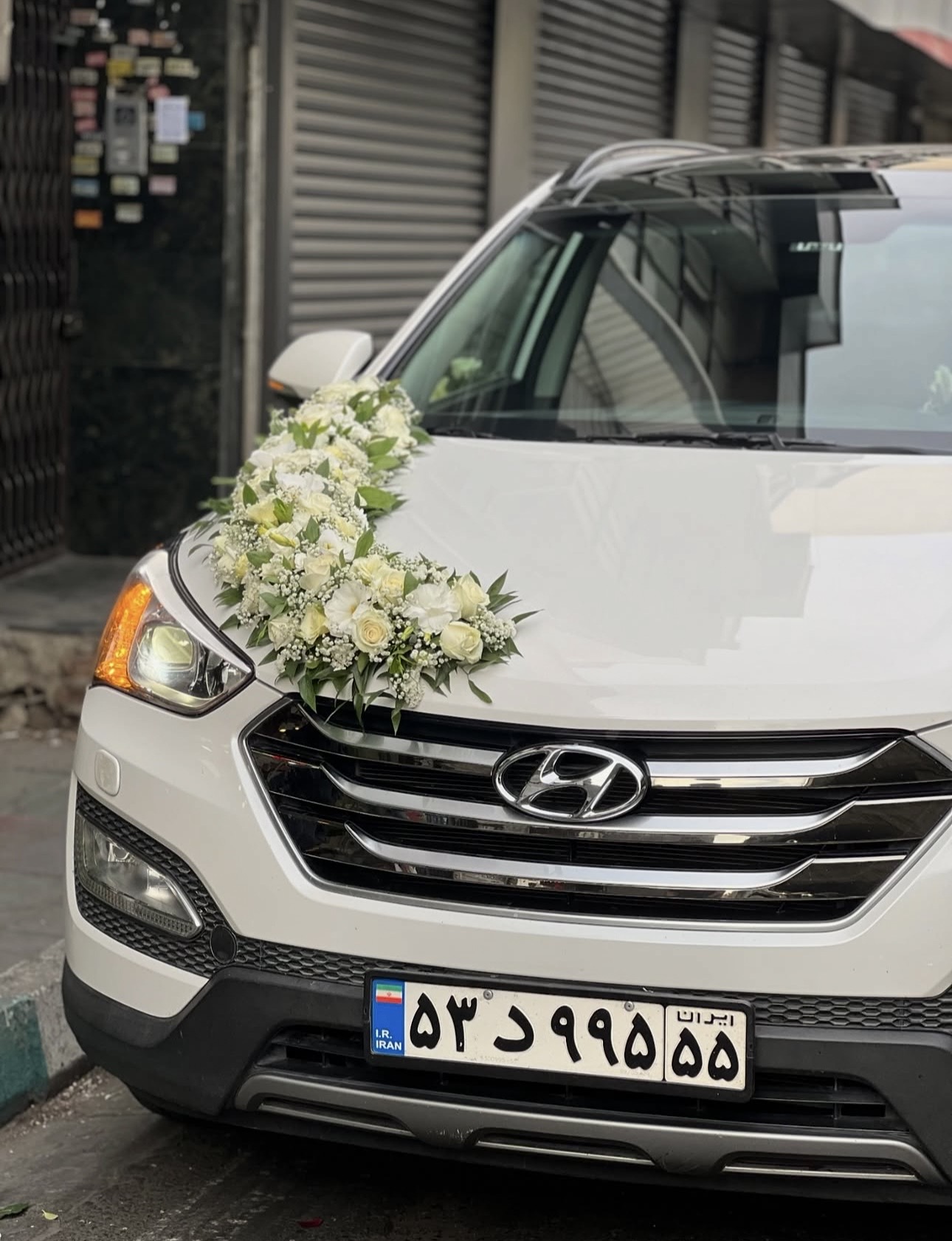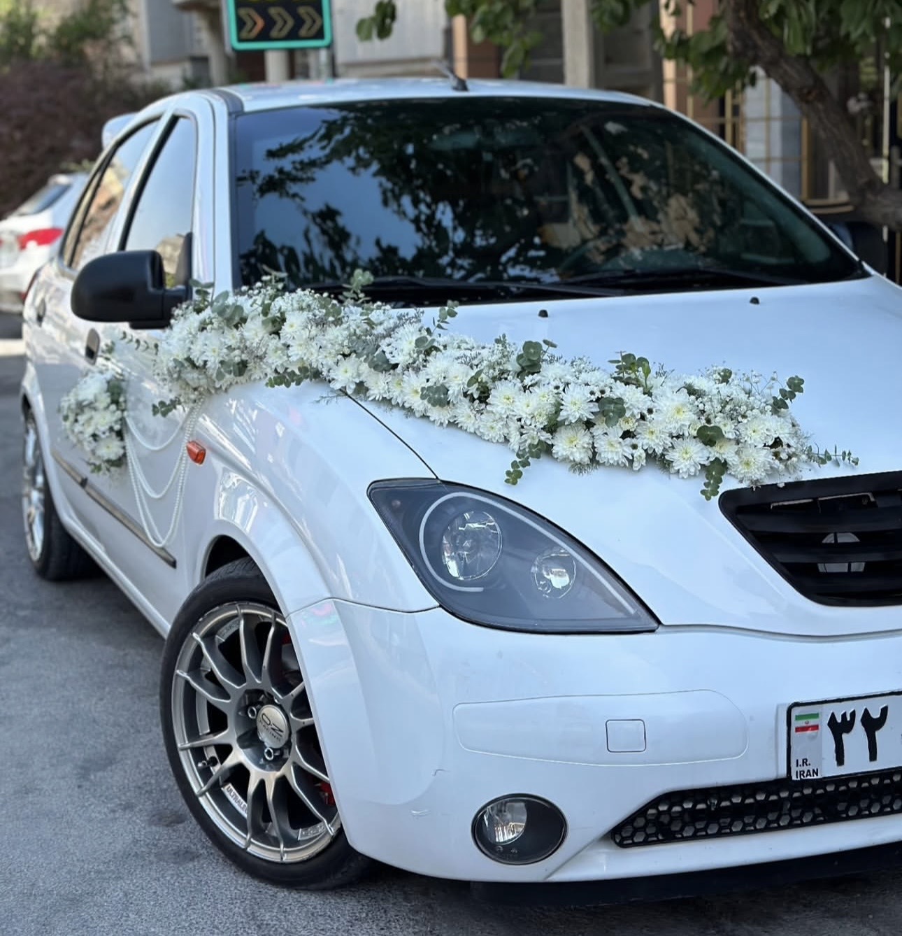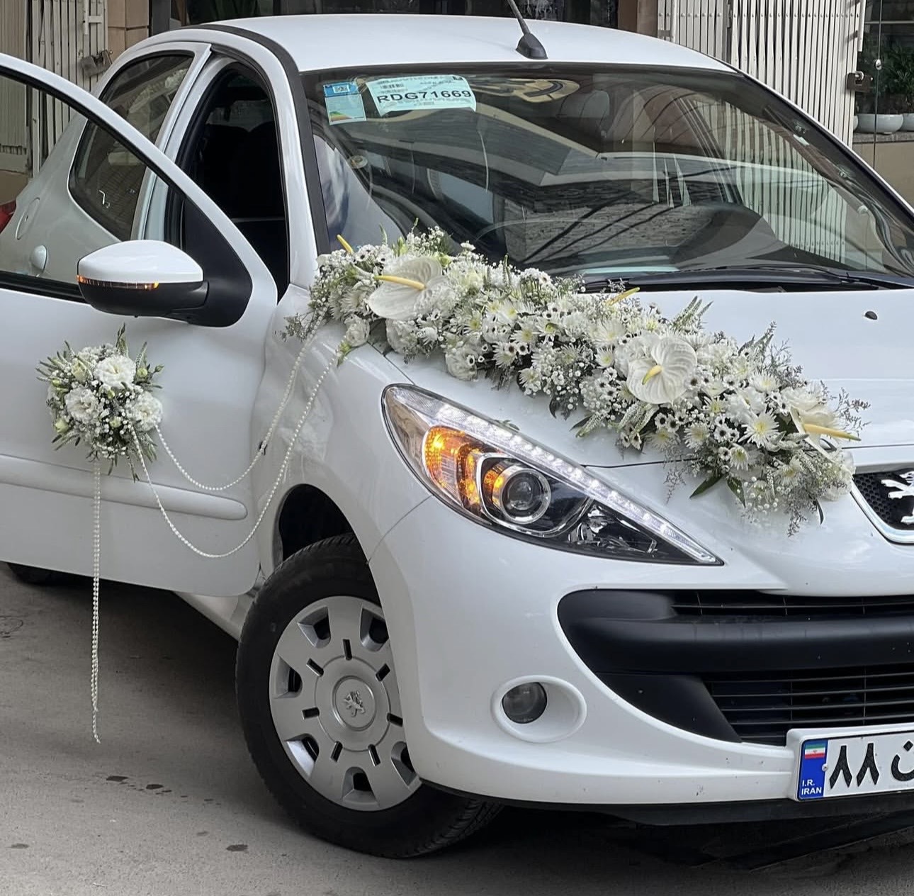 گل آرایی ماشین عروس ال ۹۰ سفید فلوبار