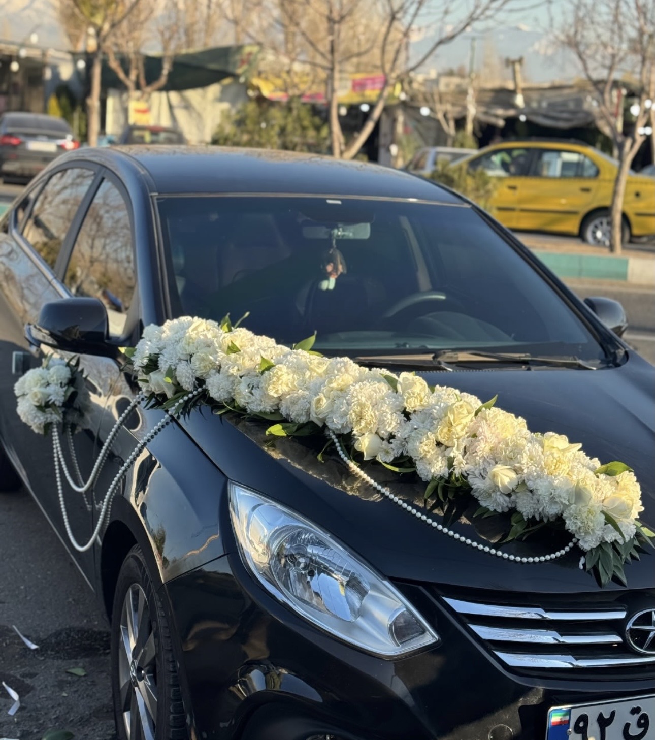 گل آرایی ماشین عروس مشکی فلوبار