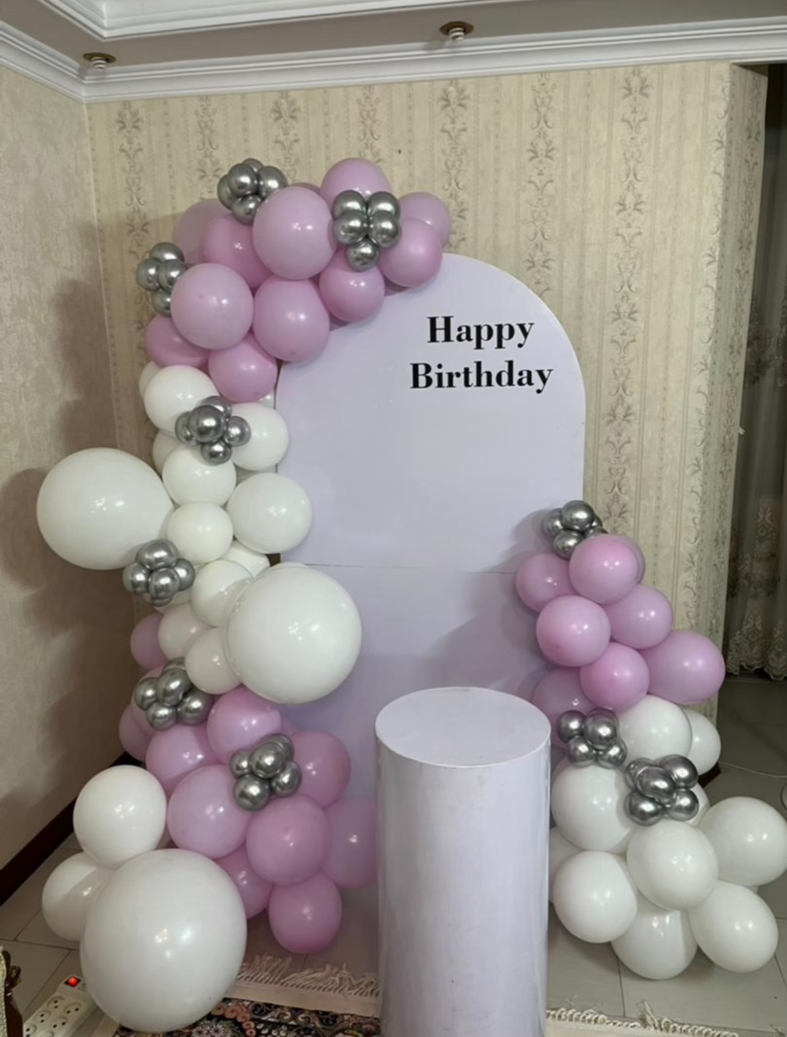 بادکنک آرایی با تم سفید صورتی فلوبار