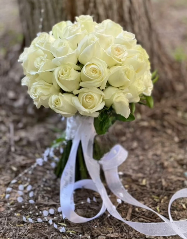 دسته گل عروس با رز سفید🤍