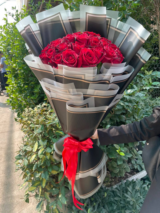 دسته گل ۴۰ شاخه رز قرمز فلوبار