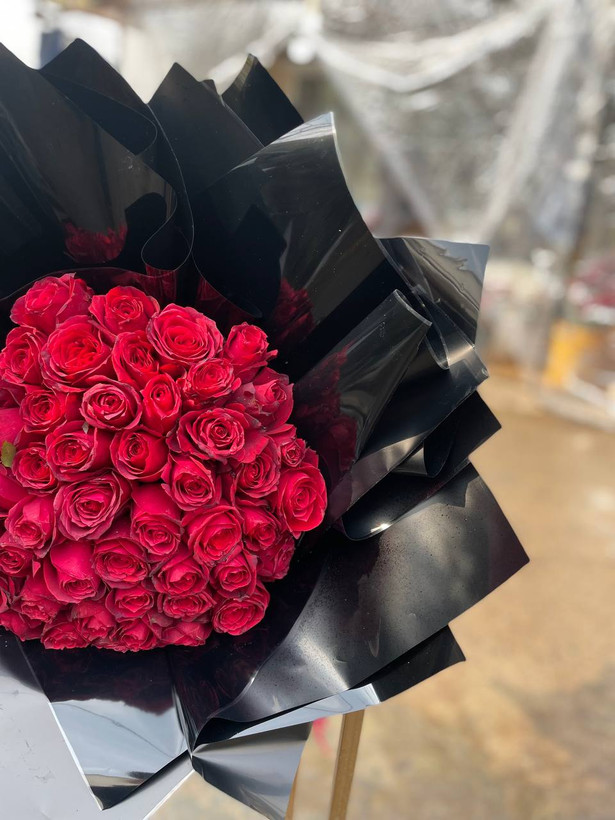 دسته گل ۴۰ شاخه رز قرمز فلوبار