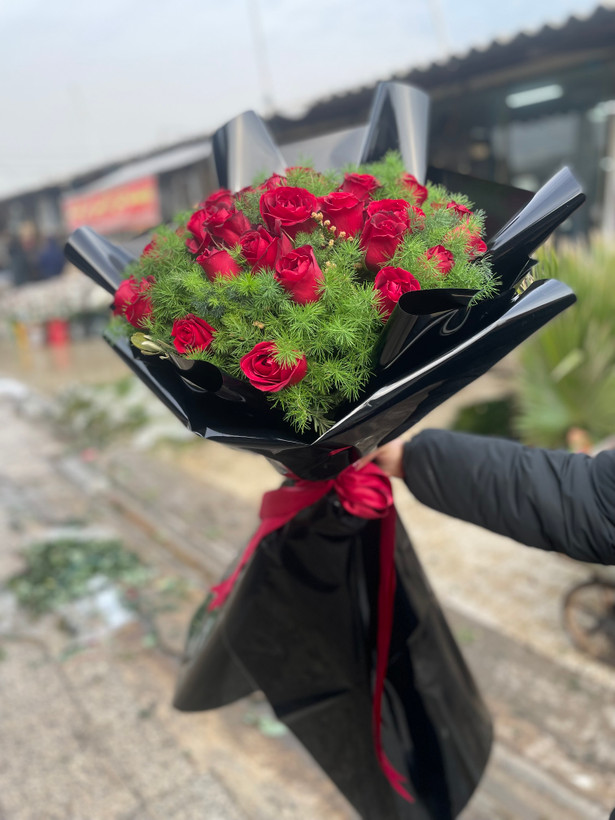 دسته گل ۲۰ شاخه رز قرمز فلوبار
