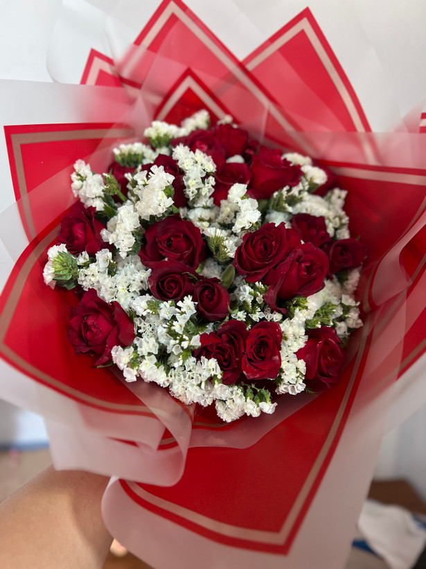 دسته گل ۲۰ شاخه رز قرمز فلوبار