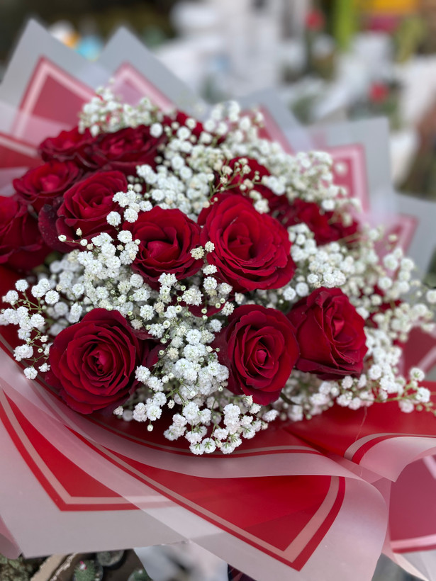 دسته گل ۲۰ شاخه رز قرمز فلوبار