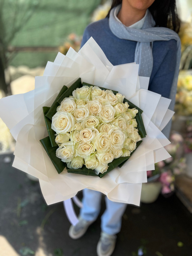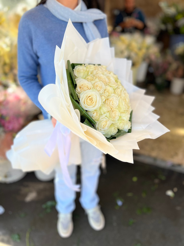 دسته گل ۴۰ شاخه رز سفید فلوبار