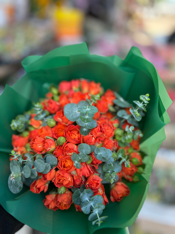 گل رز مینیاتوری و برگ اکالیپتوس🧡