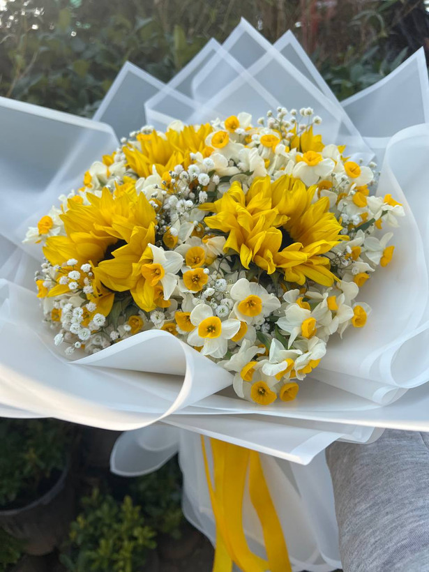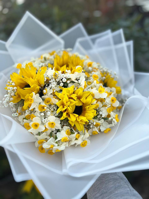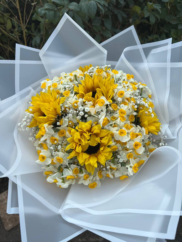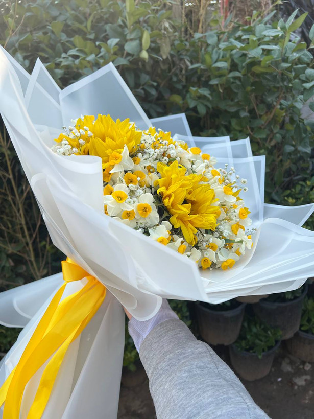 دیزاین گل نرگس، آفتابگردون و ژیپسوفیلا همچین نتیجه ی جذابی داره💛