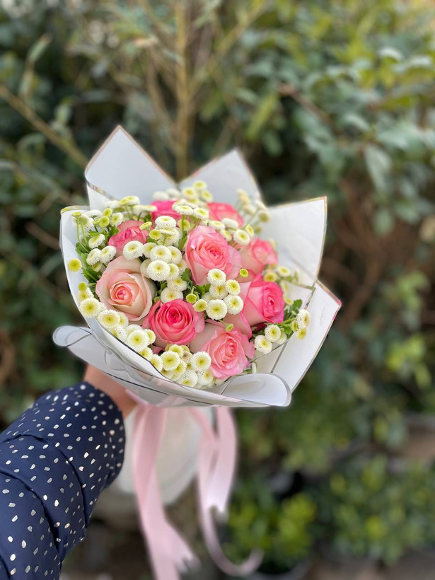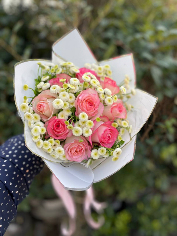 دسته گل رز لب ماتیکی و مخلصه فلوبار
