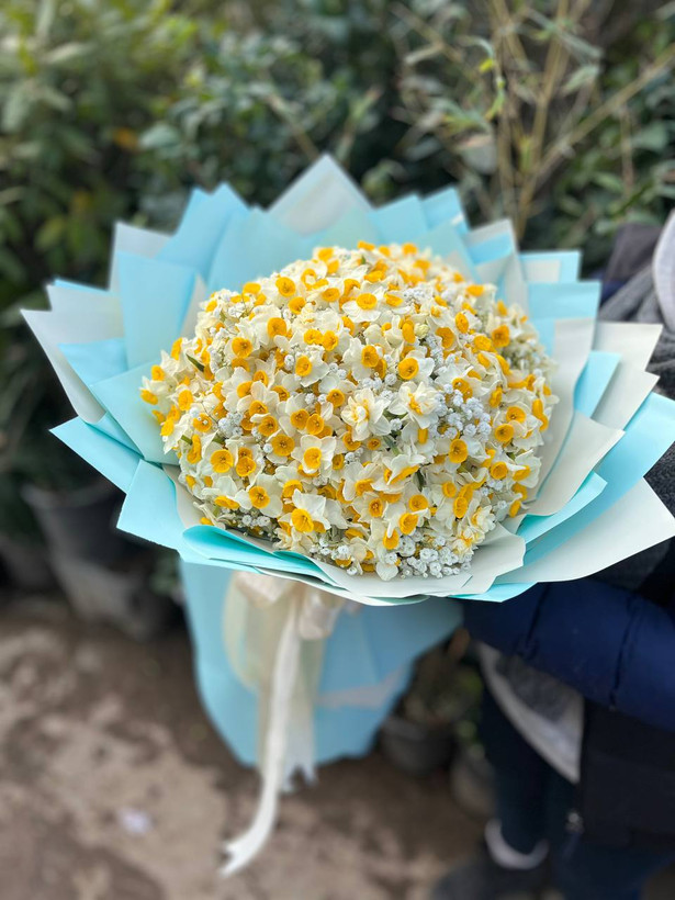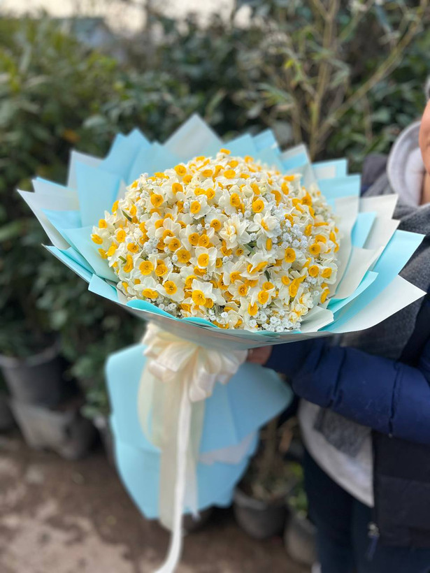 دسته گل نرگس و ژیپسوفیلا فلوبار