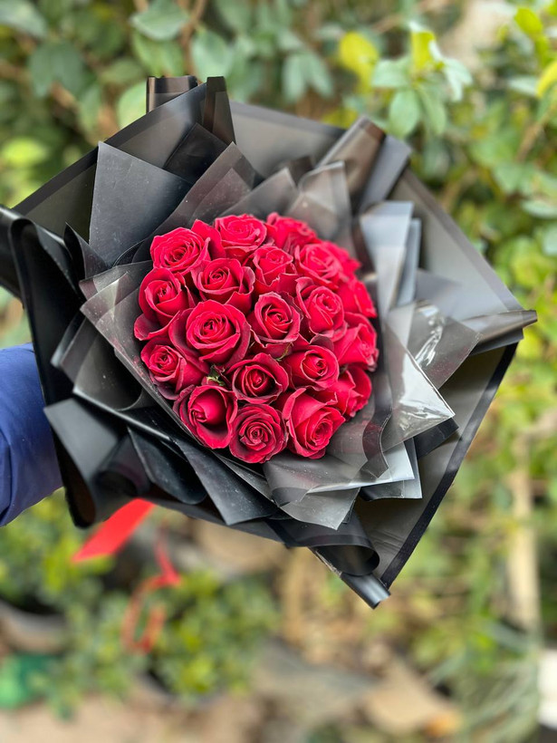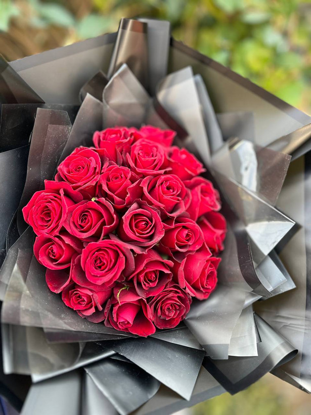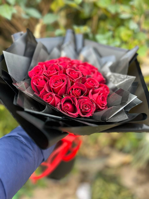 دسته گل ۲۰ شاخه رز قرمز فلوبار