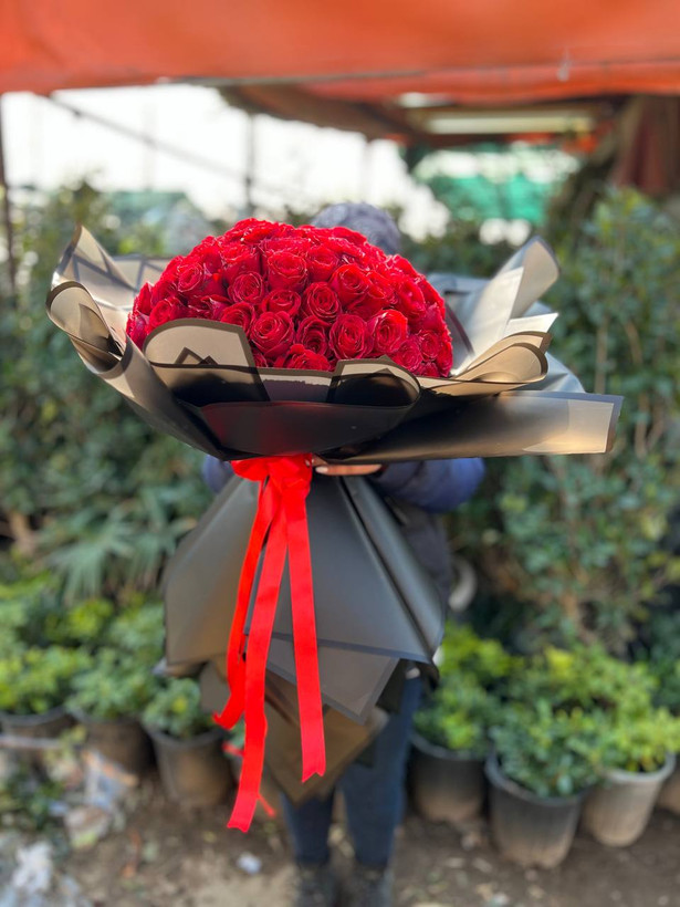 دسته گل ۱۰۰ شاخه رز قرمز ایرانی🌹
