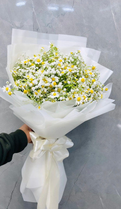 دسته گل بابونه و ژیپسوفیلا خاص و جذاب💛