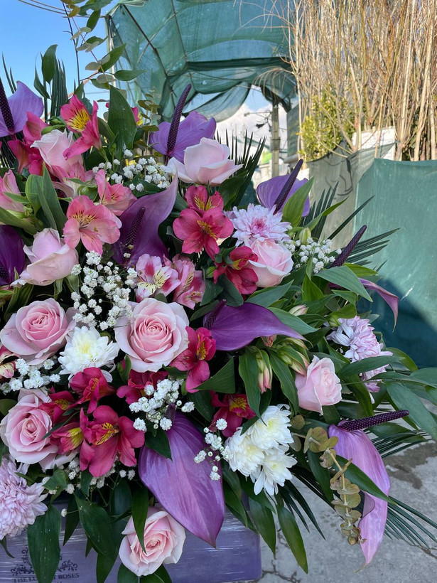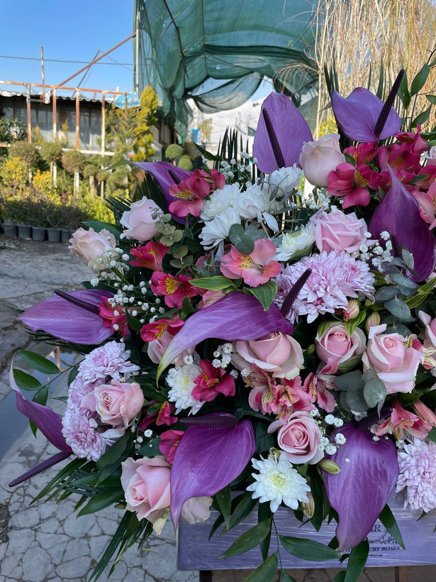 ترکیب گلهای رز، آنتریوم و السترومریا🤍💜