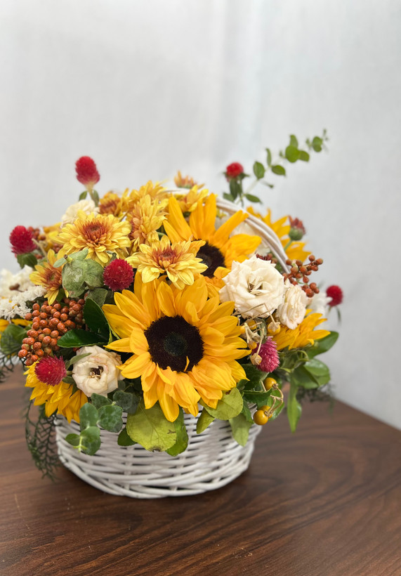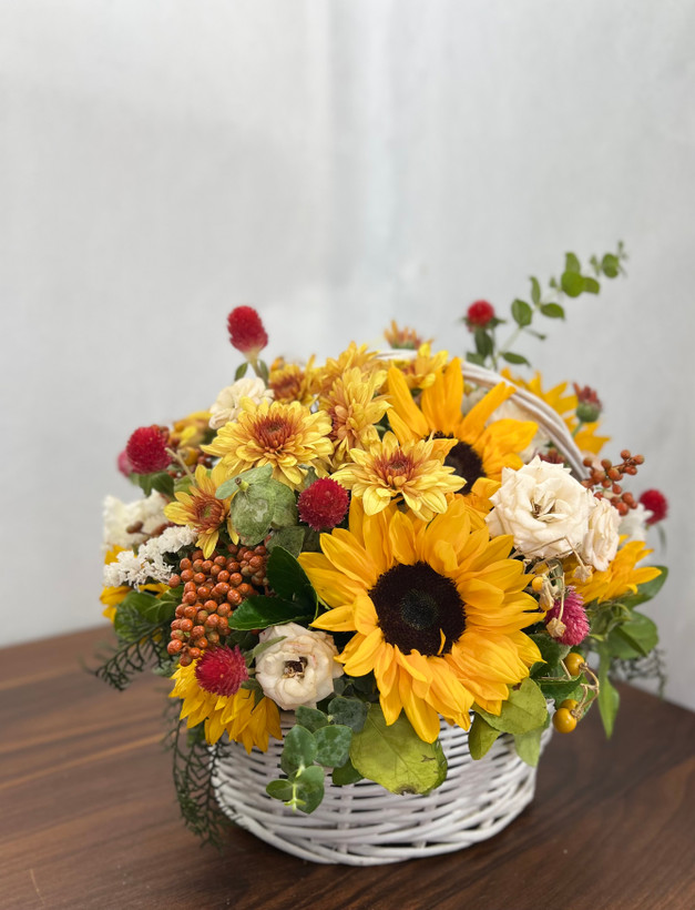 سبد گل جذاب آفتابگردون ترکیب با رنگ قرمز❤️💛
