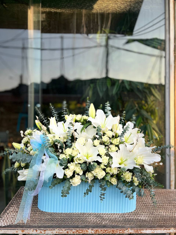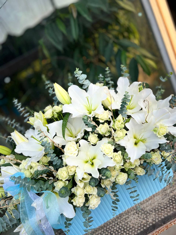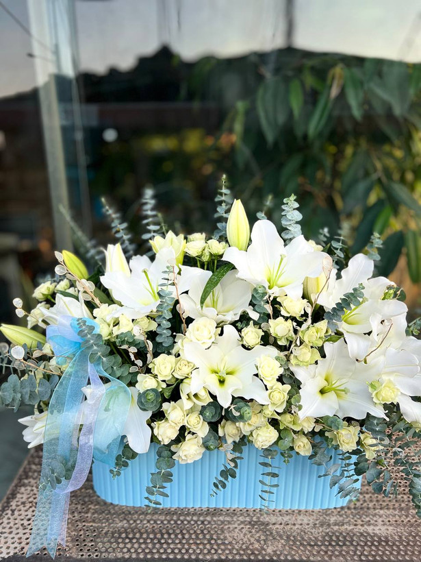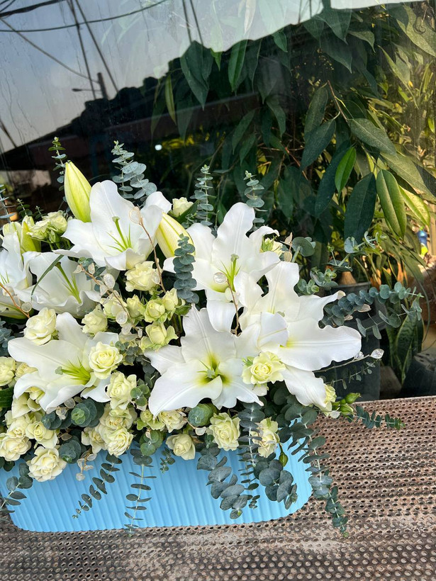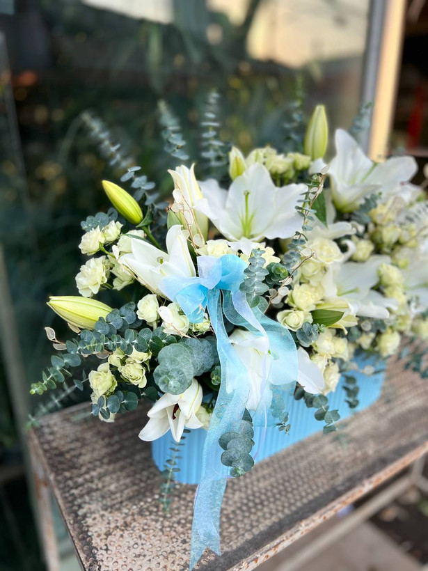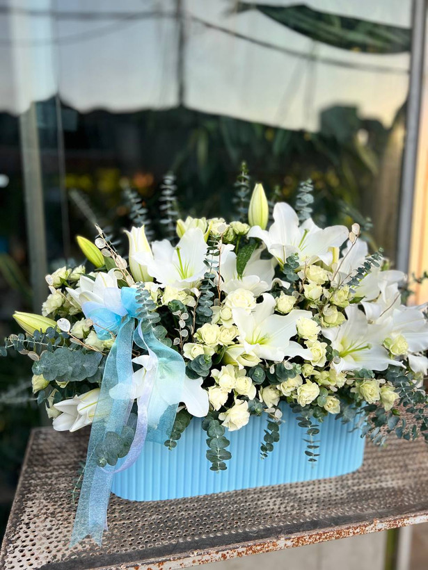 ترکیب گلهای اورینتال یا همون لیلیوم عطری، رز مینیاتوری، لورانیا(سکه ای) و گانیا(اکالیپتوس)