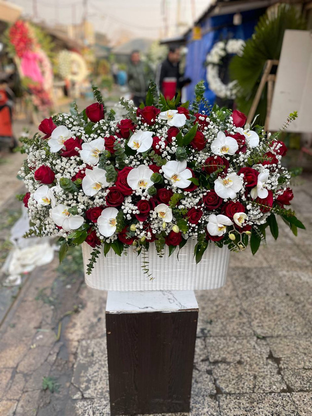 باکس گل ۴۰ شاخه رز قرمز و ارکیده🌹