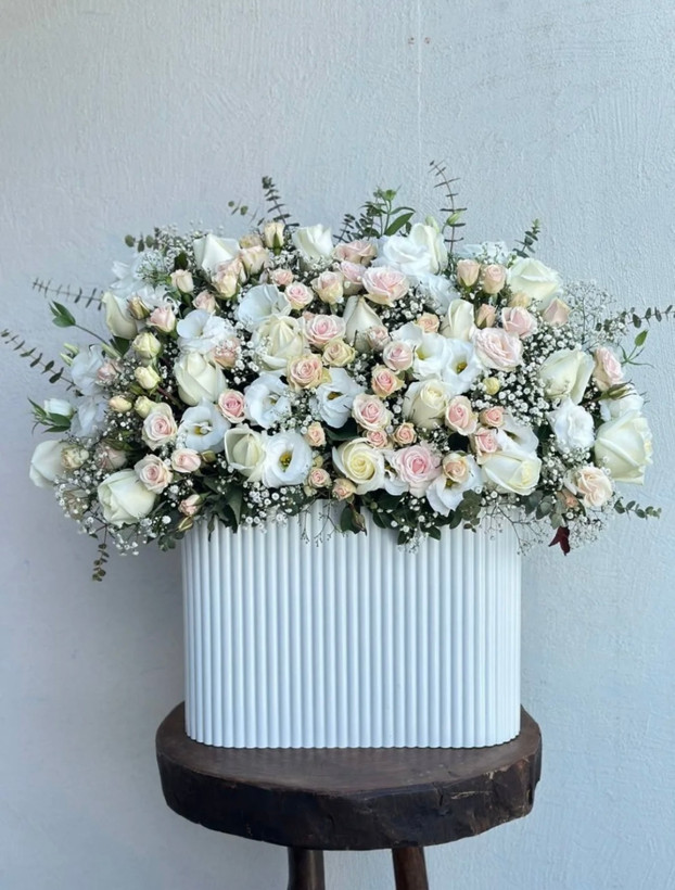 باکس گل رز سفید و گلبهی فلوبار