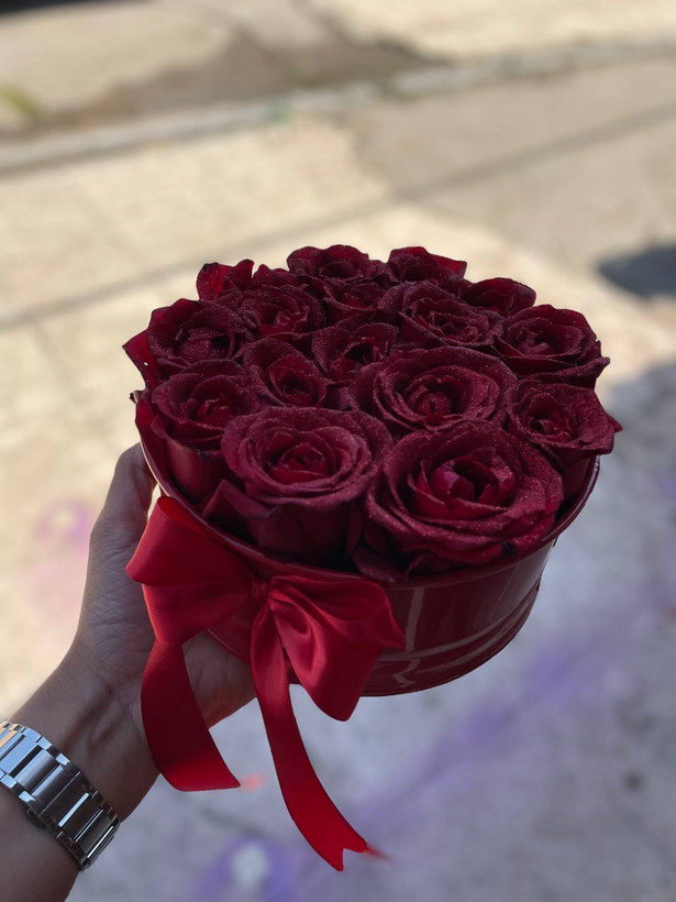 باکس گل فلزی ۲۰ شاخه رز قرمز شایندار❤️💚