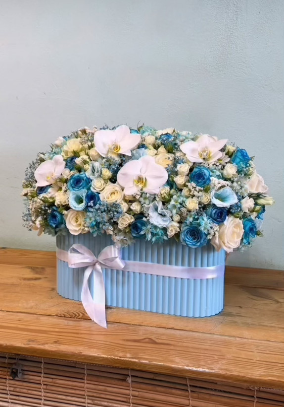 باکس گل رز و ارکیده سفید و آبی ملیح🩵🤍