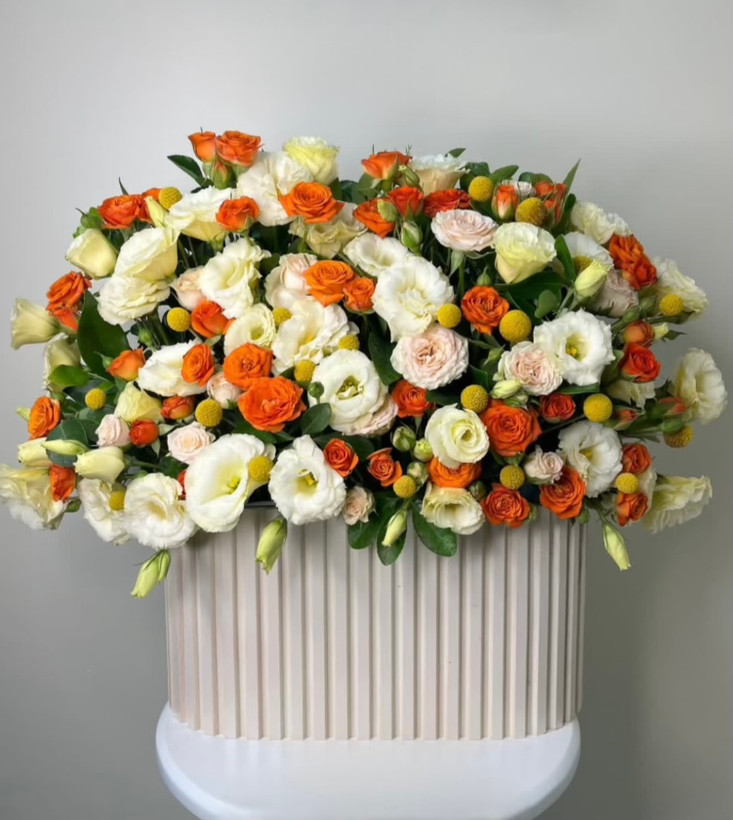 ترکیب گلهای رز مینیاتوری، لیسینتوس و کراسپدیا(توپ خورشید)💚