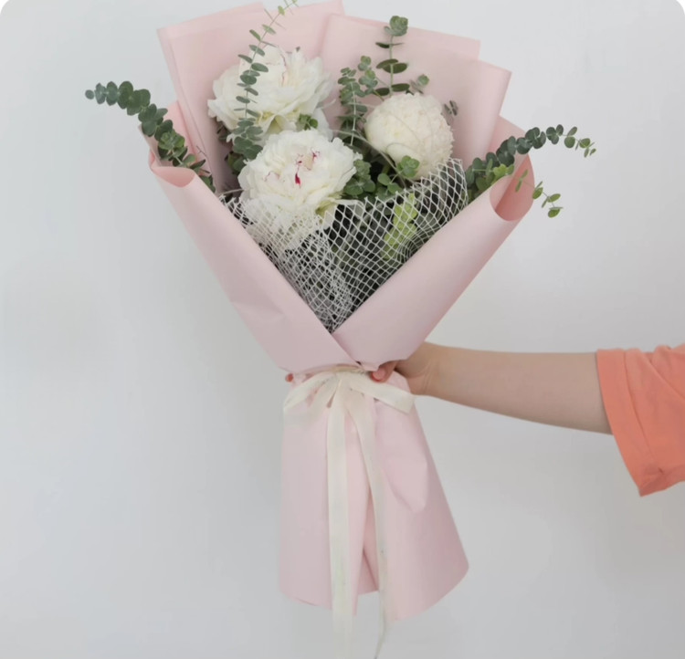 دسته گل پیونی یا گل صدتومنی🤍🩷