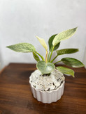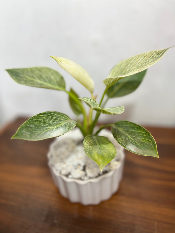 گیاه فیلودندرون برکین همراه با گلدان سفالی سفید