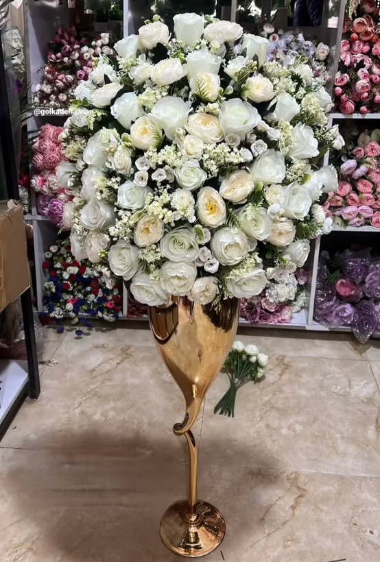 این جام گل برای قرار گرفتن روی میز بلهبرون، کنار قرآن، شیرینی و سایر تزئینات بسیار مناسب است. ترکیب رنگ سفید و گلبهی، با پایه طلایی جام، جلوهای مجلل و در عین حال صمیمی برای مراسم ایجاد میکند. این جام بعد از مراسم هم میتواند بهعنوان دکور در منزل عروس یا سالن استفاده شود.