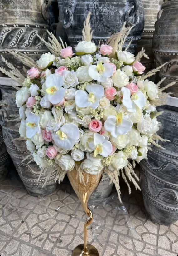 این تصویر یک جام گل بلهبرون با گل مصنوعی صورتی را میتوان اینگونه توصیف کرد که یکی از رایجترین و لطیفترین انتخابها برای مراسمهای سنتی و شیک ایرانی است، بهخصوص برای بلهبرون، که زیبایی، ظرافت و حس رمانتیک را همزمان به فضا میآورد.