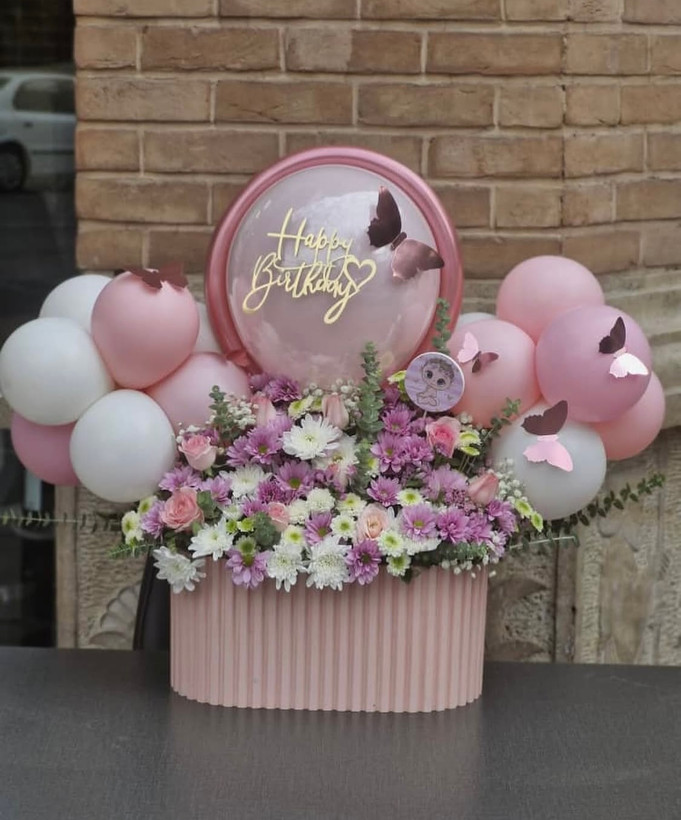 ‎باکس گل و بادکنک نوزادی دخترونه فلوبار