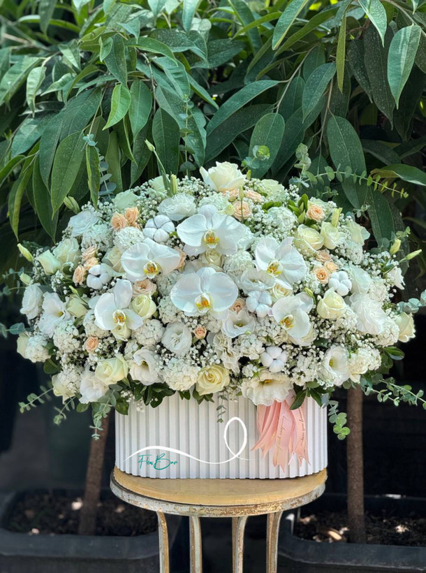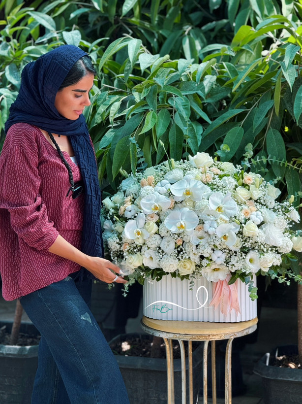 • باکس گل یا دسته گل معمولاً از طرف خانواده داماد به عروس تقدیم میشود و نوع گل انتخابی نیز اهمیت دارد؛ مثلاً رز سفید نماد عشق پاک و ماندگار است.