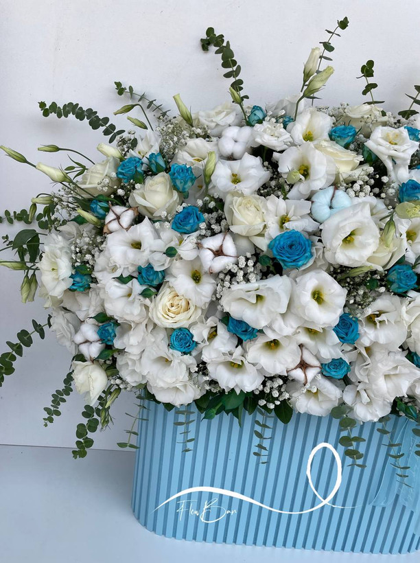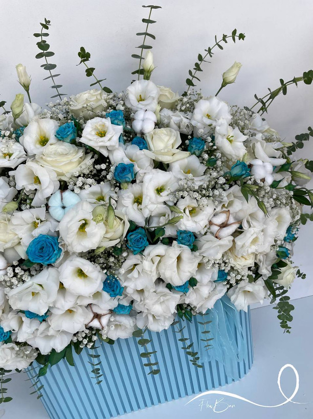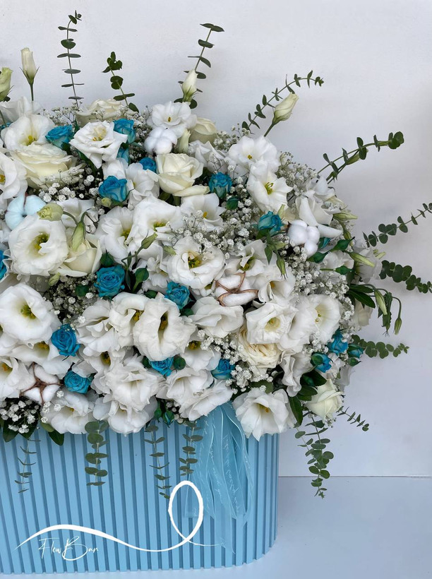 باکس گل رز سفید آبی فلوبار
