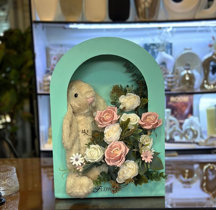 باکس گل نوزادی پسرونه با گل مصنوعی فلوبار