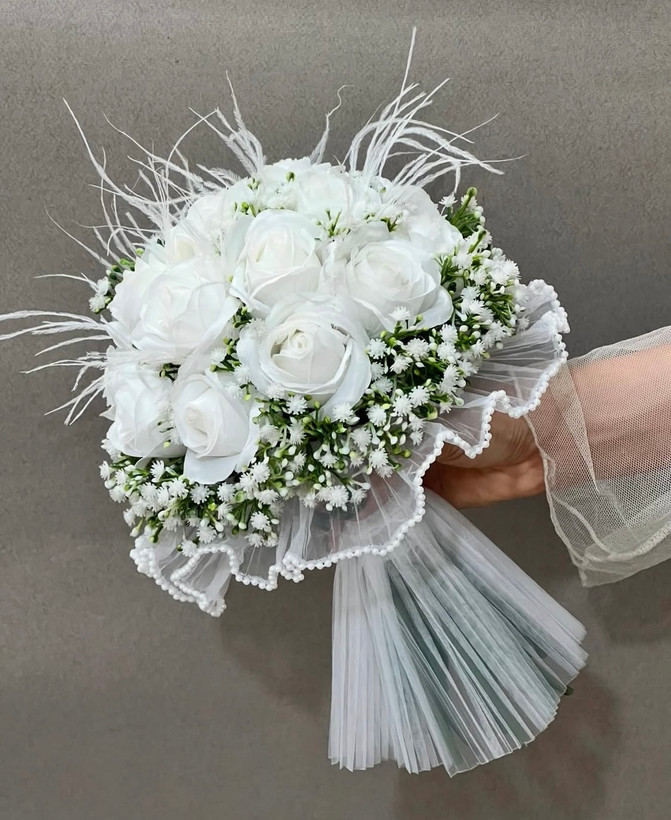 دسته گل عروس با رز مصنوعی و ژیپسوفیلا مصنوعی، انتخابی ماندگار و شیک برای عروسهایی است که به دنبال زیبایی همیشگی در روز عروسی خود هستند. ترکیب گلهای رز مصنوعی با ژیپسوفیلا ظریف، ظاهری طبیعی و رمانتیک ایجاد میکند و تور لبه مرواریدی دور دسته گل، جلوهای لوکس و خاص به آن میبخشد. این دسته گل مصنوعی به دلیل ماندگاری بالا، هم برای مراسم عروسی و هم به عنوان یادگاری ارزشمند پس از جشن مناسب است. استفاده از رز مصنوعی با کیفیت و ژیپسوفیلا مصنوعی باعث شده تا این دسته گل به زیبایی نمونه طبیعی باشد و برای عروسهایی با سلیقه کلاسیک و مدرن یک انتخاب ایدهآل محسوب شود.