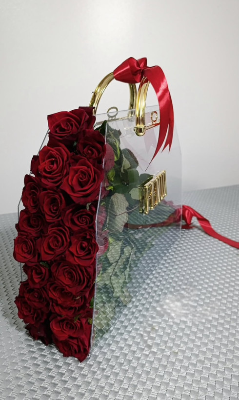 گل رز قرمز داخل فلاوربگ پلکسی فلوبار