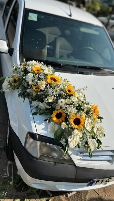 گل آرایی ماشین عروس ال ۹۰ سفید فلوبار