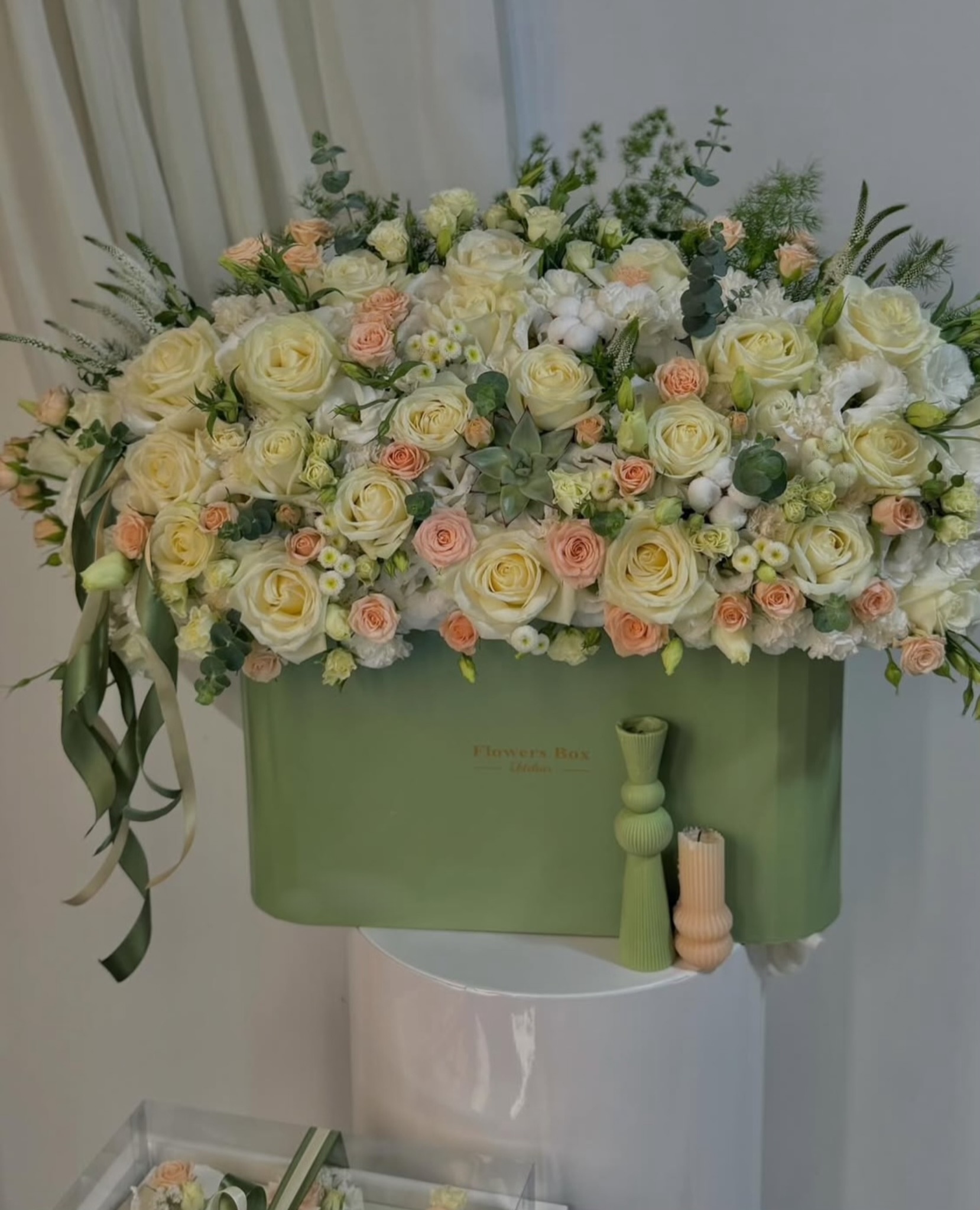 باکس گل و کاپ کیک خواستگاری سفید سبز فلوبار