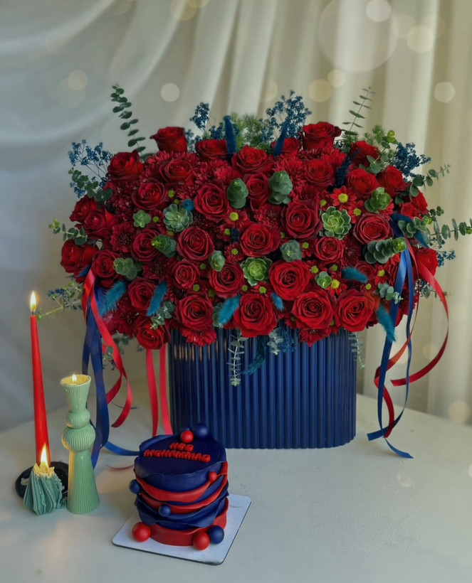 ست گل و کیک تولد قرمز و سرمه ای فلوبار