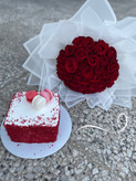 دسته گل رز قرمز ۴۰ شاخه به همراه کیک ۵۰۰ گرمی😍