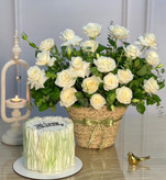 باکس گل و کیک تولد سبز و کرم فلوبار